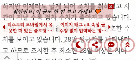 추천 글 박스와 버튼이 투명하여 경우에 따라 식별이 잘 되지 않았는데 블러 효과를 추가하여 가시성을 개선하였습니다.