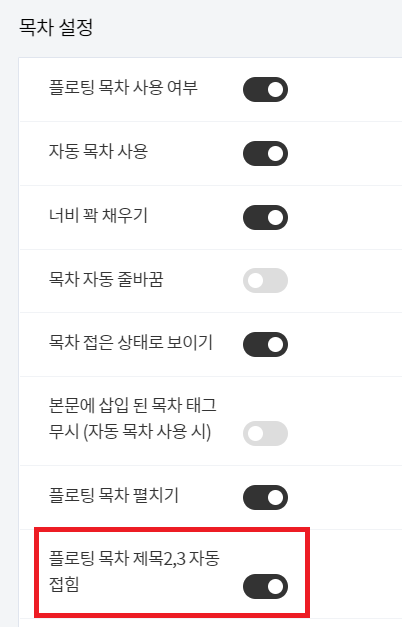 목차 하위 항목 자동 접힘 기능 추가
