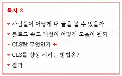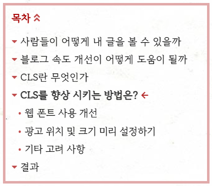 하위 항목이 있는 위치로 스크롤을 하거나 해당 항목을 클릭하면 다음과 같이 목차가 펼쳐 집니다.
