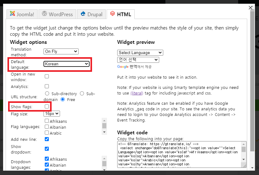 GTranslate 위젯(Widget) 적용