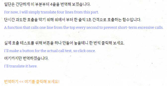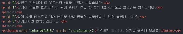 번역 예시 부분은 에디터 HTML 모드에서 다음과 같이 작성하였습니다.