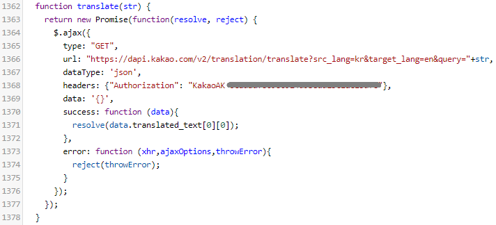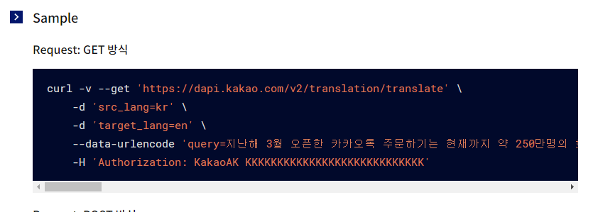 url: "https://dapi.kakao.com/v2/translation/translate?src_lang=kr&target_lang=en&query="+str,