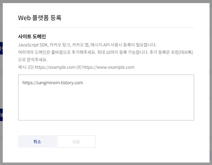 그리고 앱설정 > 플랫폼 > Web 플랫폼 등록 을 선택합니다.