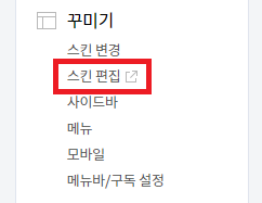관리 페이지 > 꾸미기 > 스킨 편집 으로 이동합니다.