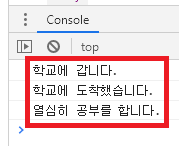 예제로 학교에 가서 공부하는 과정을 메시지로 출력하는 3가지 함수를 작성해 보았습니다.