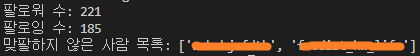 마지막으로 팔로워 사용자명 목록과 팔로잉 사용자명 목록을 비교하여