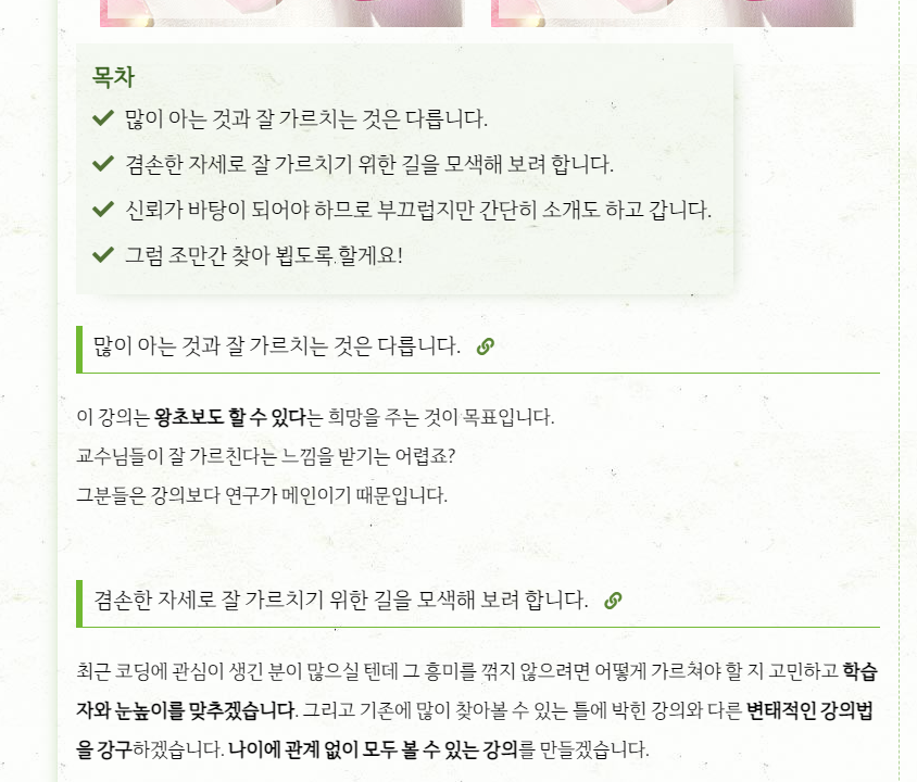 목차를 확인하려면 다시 위로 올라가야 하는 불편함을 해소하고자 만들어 보았습니다. 생각보다 깔끔하게 잘 만들어진 것 같아서 공유합니다. 주의) 고급 버전을 먼저 반영하고 초급 버전을 나