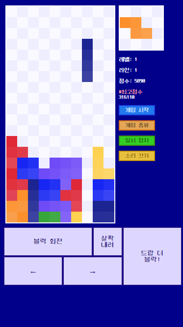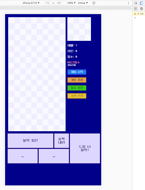 모바일 기기 터치 스크린으로 테트리스를 하기가 쉽지는 않네요.
