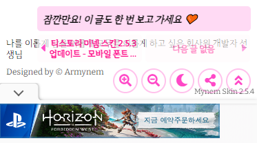 다음과 같이 플로팅 광고, 추천 글 보기, 푸터 등이 모두 앵커 광고 상단에 보이도록 하였습니다.