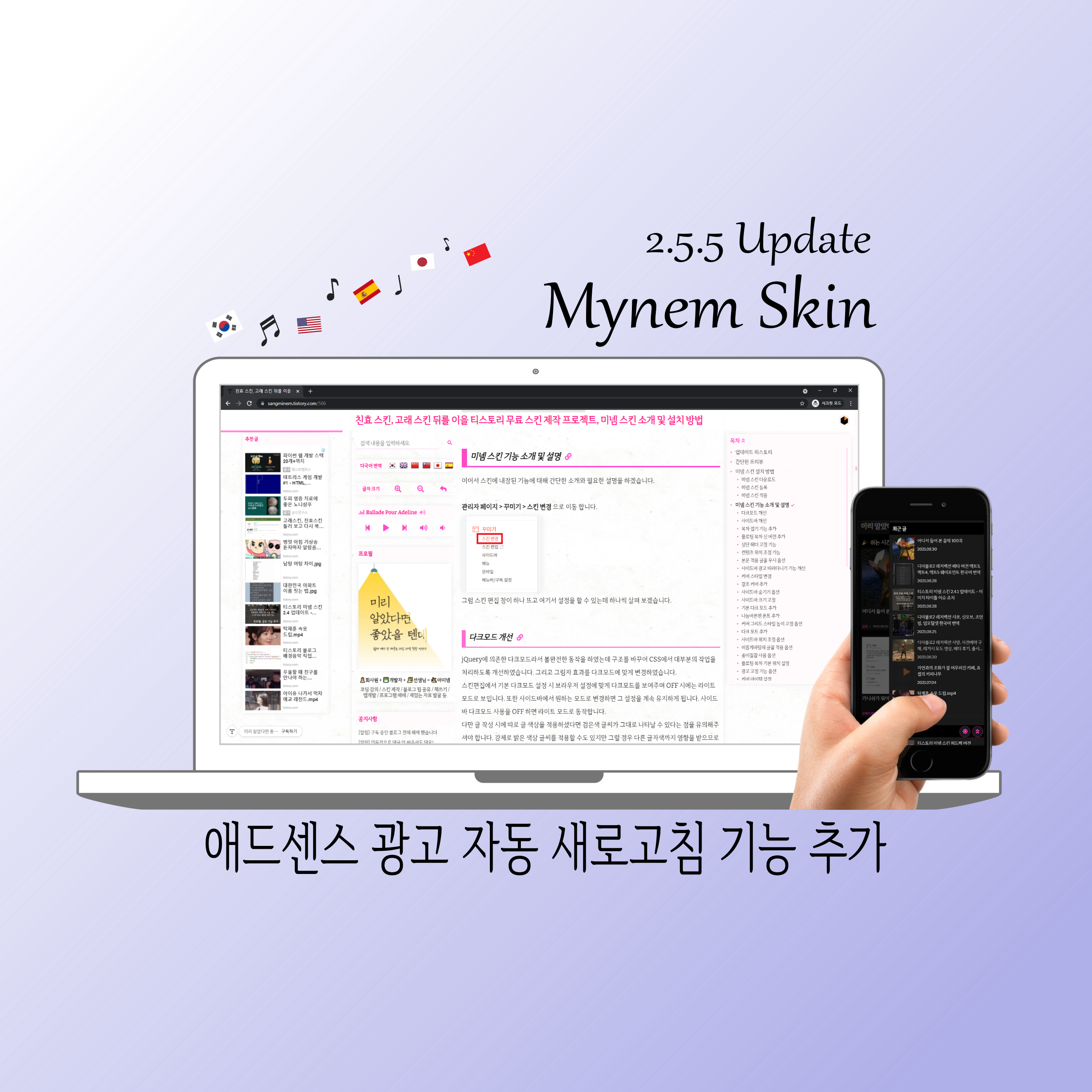 | 티스토리 미넴 스킨 2.5.7 업데이트 - 구글 광고 게재, 배경음악 기능 개선 (20) | 2021.09.23 |