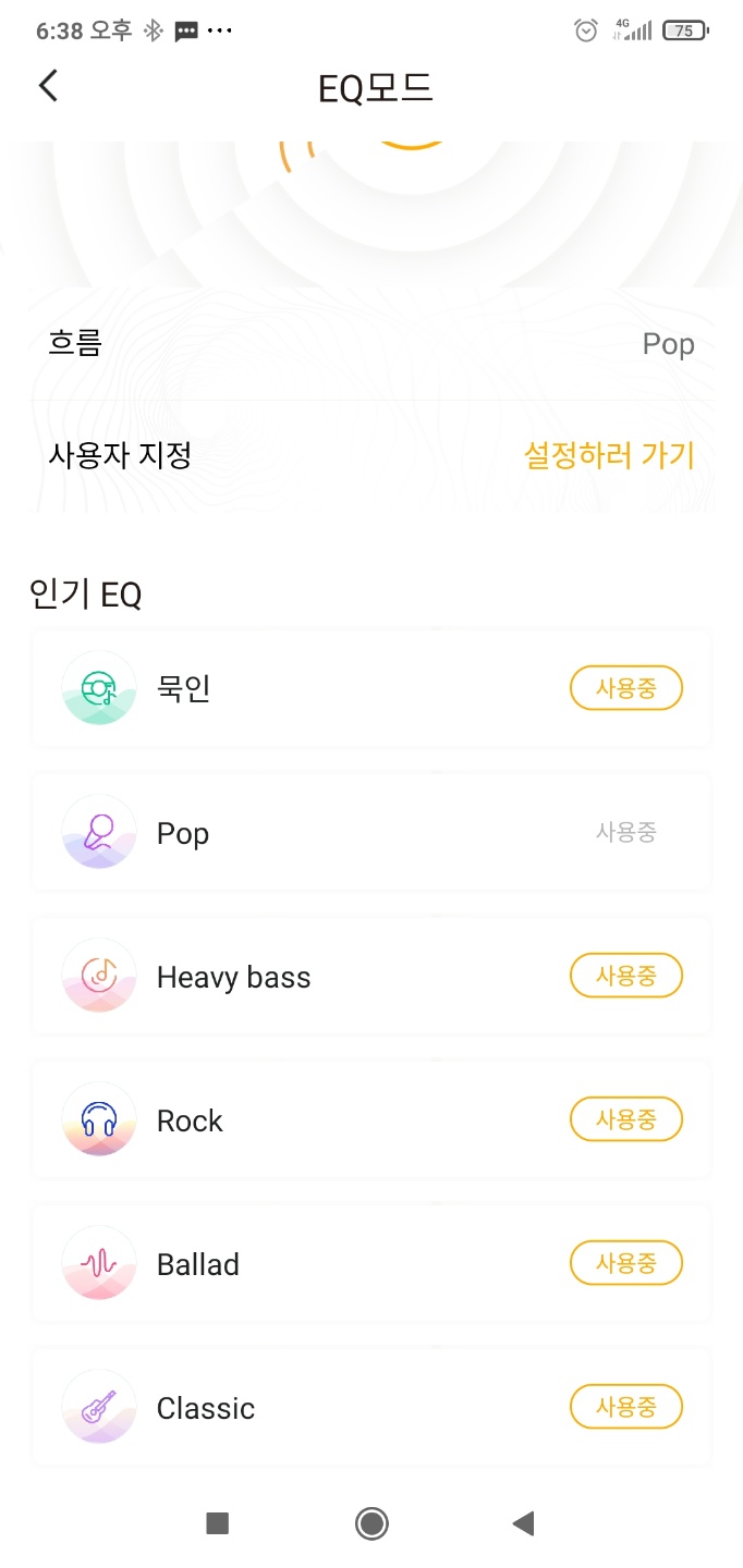 EQ모드에 들어가 보니 미리 설정된 EQ로 변경할 수도 있었습니다.