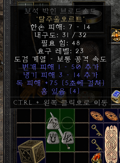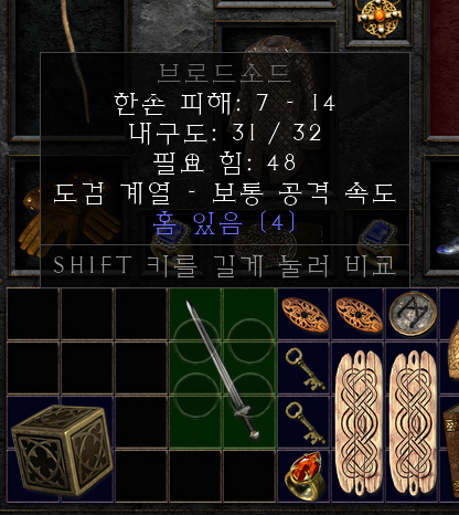 저 같은 경우는 지옥(헬) 난이도 1막(액트1)에서 브로드소드를 먹었습니다. 아무래도 크리스탈소드가 더 예뻐서 선호하는 것 같지만 저는 별로 상관이 없습니다. 브로드소드는 최대 4소켓이라 안전하기도 하구요.