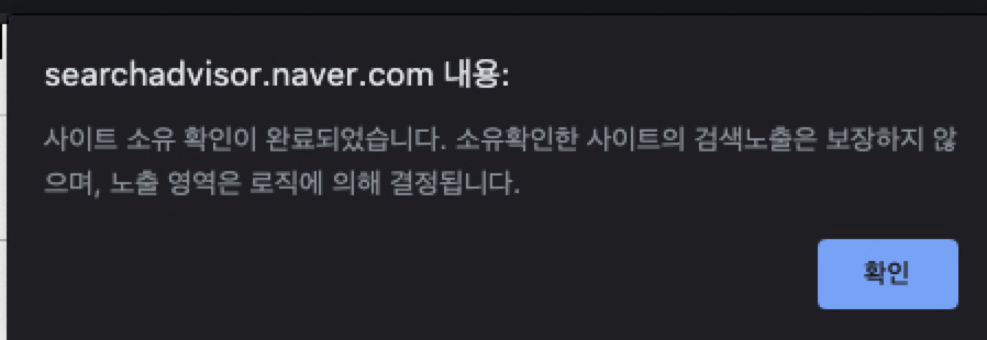 네이버 서치 어드바이저로 돌아와 소유확인 버튼을 클릭 합니다.