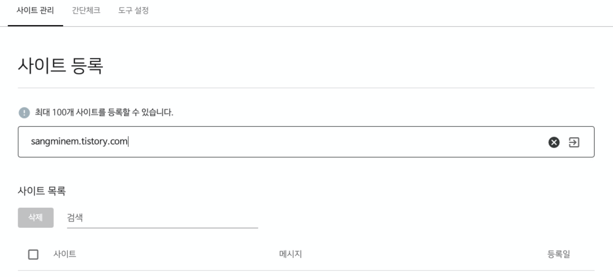 사이트 관리 > 사이트 등록 > URL을 입력합니다.