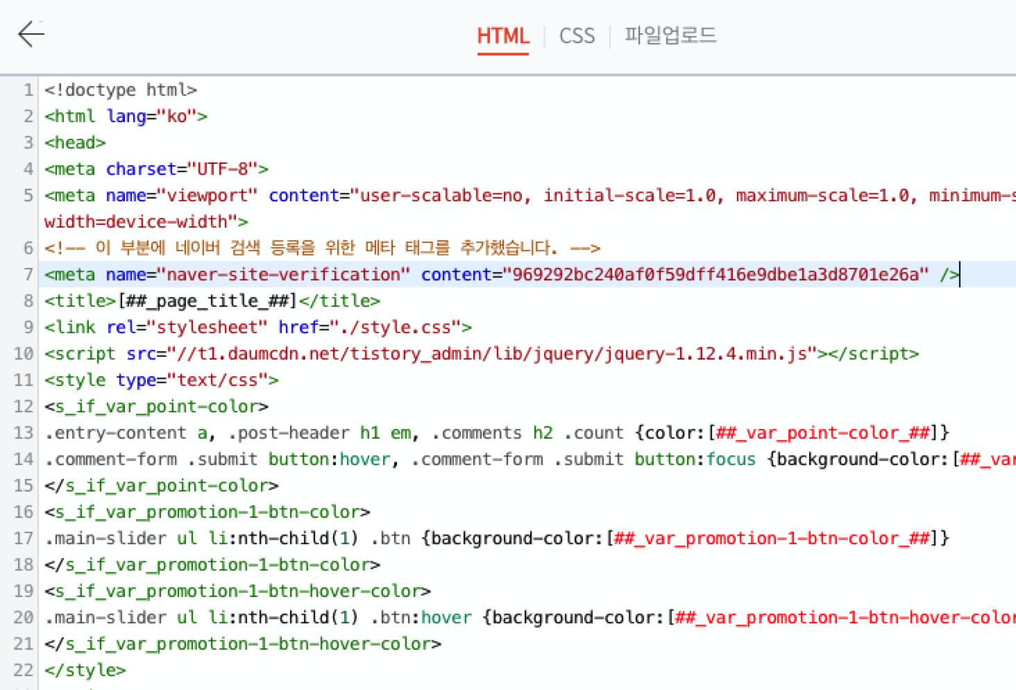 그리고 제공되는 메타 태그를 복사하겠습니다.