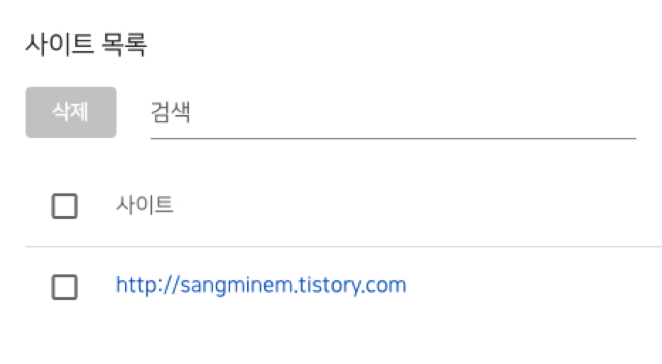 사이트 관리 > 사이트 목록 > 등록한 사이트를 선택합니다.