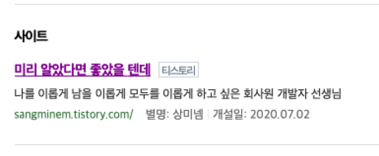 티스토리는 다음 카카오에서 서비스하는 블로그라서 따로 등록을 하지 않아도 다음 검색 결과에 노출이 되지만