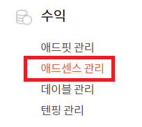 먼저 관리자 페이지 수익 > 애드센스 관리 메뉴를 통해 기본 광고를 설정합니다.