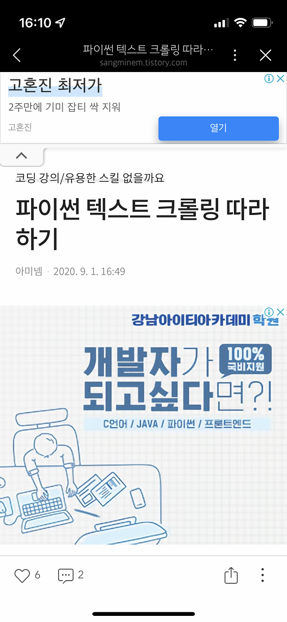 | 카카오 뷰에 티스토리 글 노출, 대박 이게 된다고? (9) | 2022.03.08 |