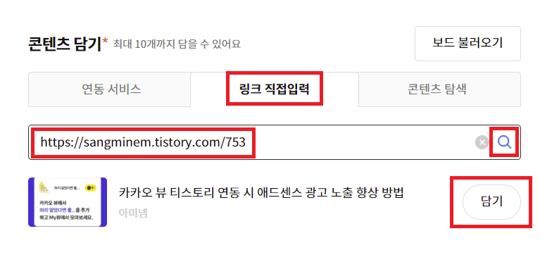 일단 광고의 효과를 보기 위해서는 내가 만든 카카오 뷰 보드에 사람들이 많이 방문을 해야겠죠. 방문 경로에는 여러 가지가 있어 보이는데 카카오 뷰 자체 검색을 통해 보드에 접근할 수도 있고 다른 보드와 연관된 보드를 추천해주는 기능도 있습니다.