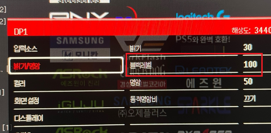 처음엔 응답 속도를 높였더니 현상이 개선되어 응답 속도만 관련이 있다고 생각했습니다. 그런데 오히려 블랙레벨이라는 옵션을 높게 설정할 수록 이러한 현상이 개선되는 것을 확인하였습니다. 그래서 기본 50으로 설정되어 있던 값을 최대 값인 100으로 높여 보았습니다.
