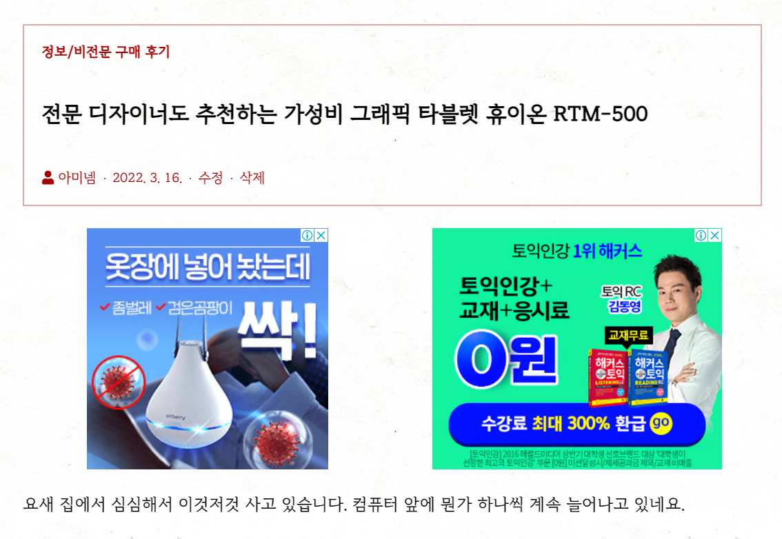 저장하고 확인해 보면 다음과 같이 광고가 잘 게재되는 것을 볼 수 있습니다.