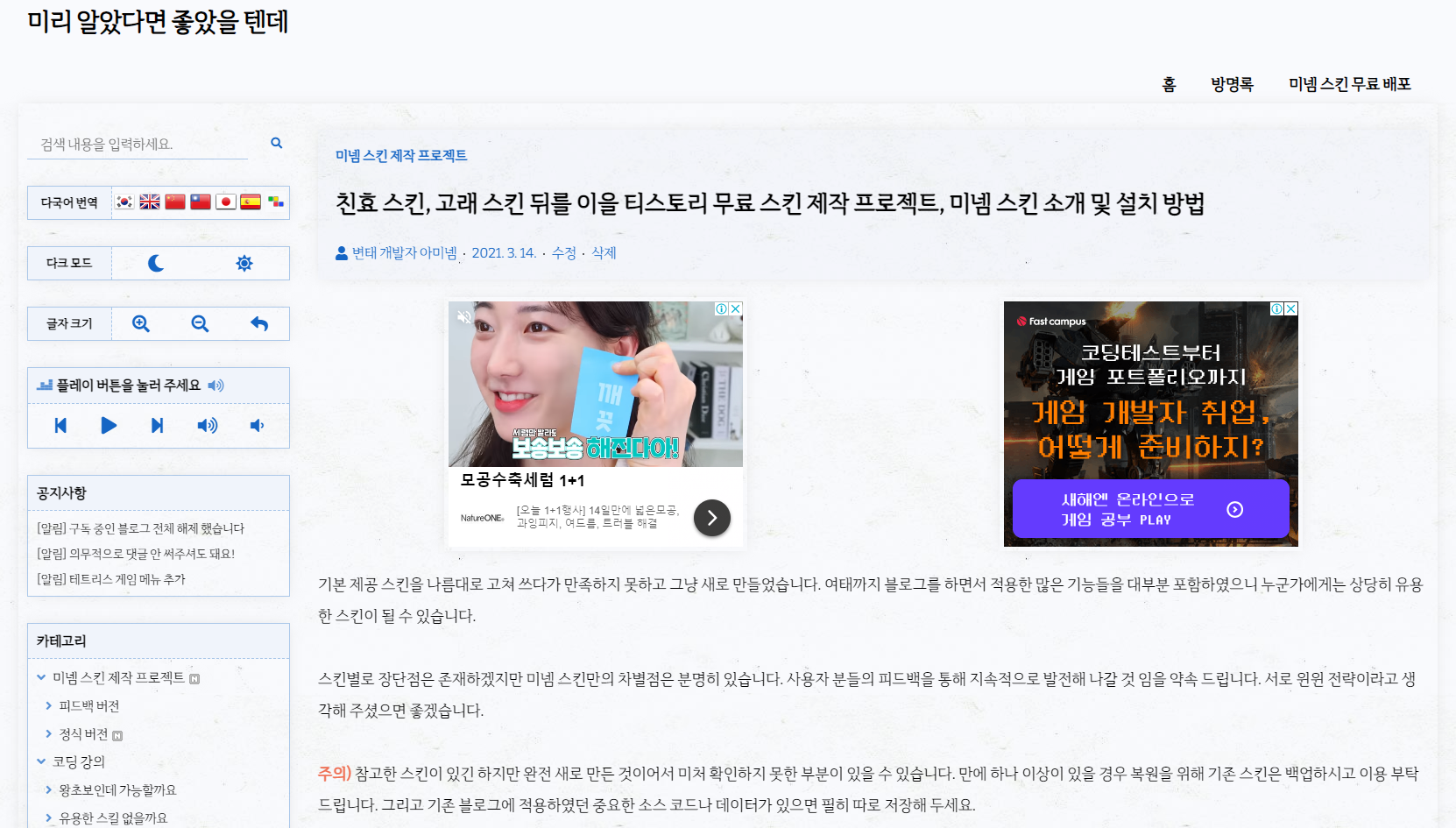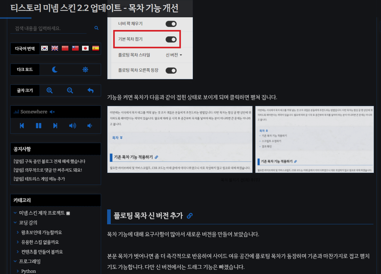 | 미넴 스킨 (Mynem Skin) 목차 기능 소개 (8) | 2022.03.18 |