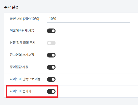 사이드바 숨기기 옵션