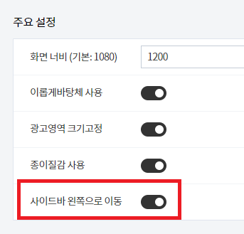 사이드바 위치 조정 옵션