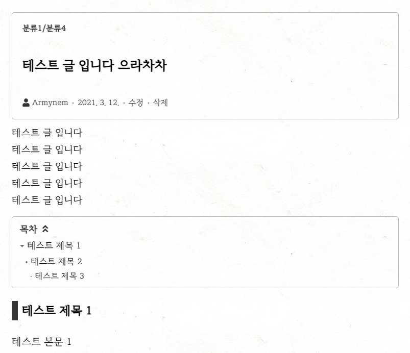 본문 맨 위를 적용한 경우의 자동 목차입니다.