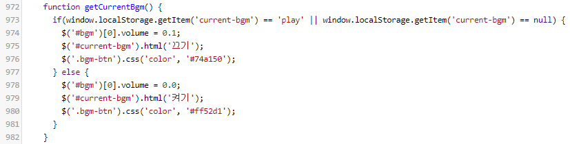 먼저 현재 상태를 불러오는 getCurrentBgm 함수를 하나 만들어 보겠습니다.
